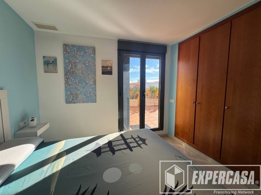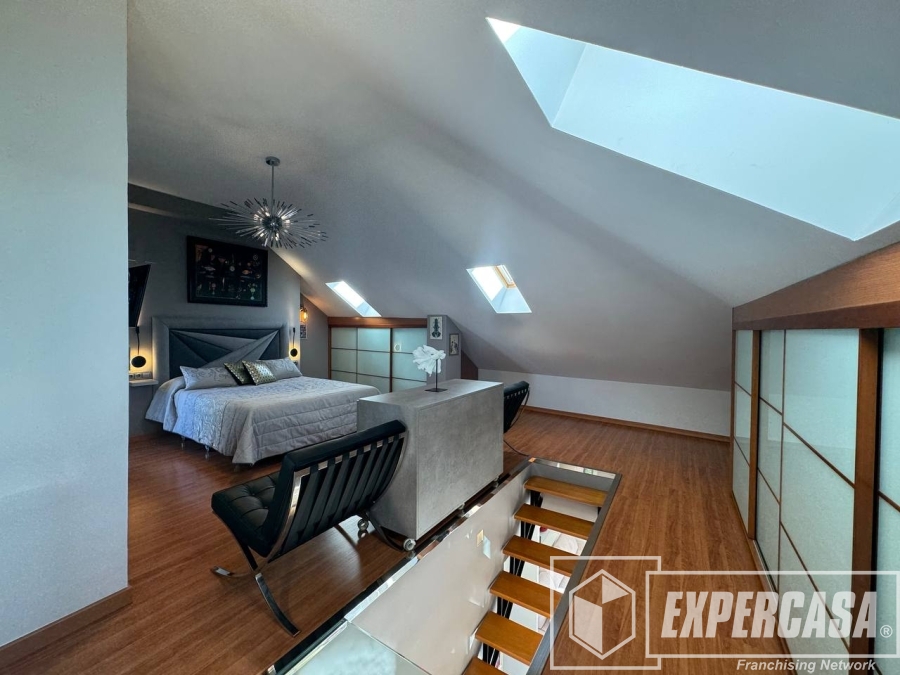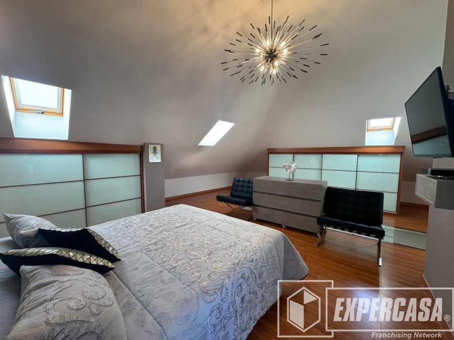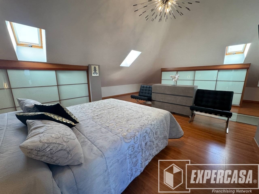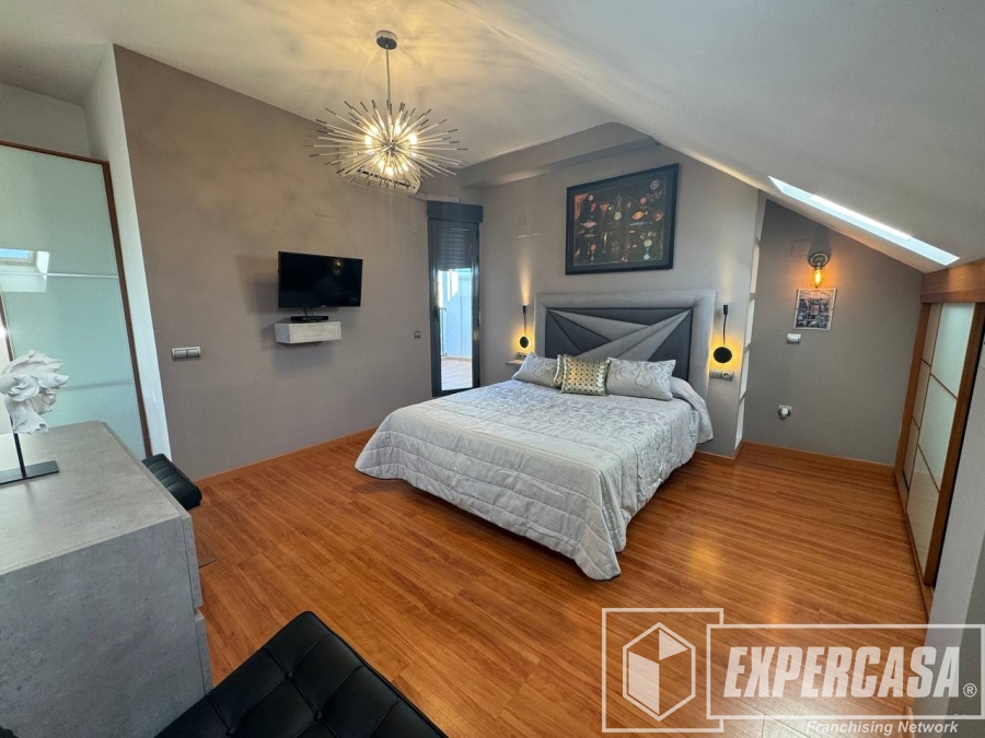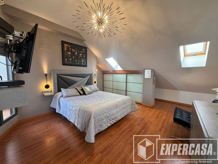 La habitación principal de 40 m², ubicada en la planta alta, cuenta con baño completo en suite y acceso directo a la terraza interior; dispone de ventanas tipo lucernario que aportan luz natural.
