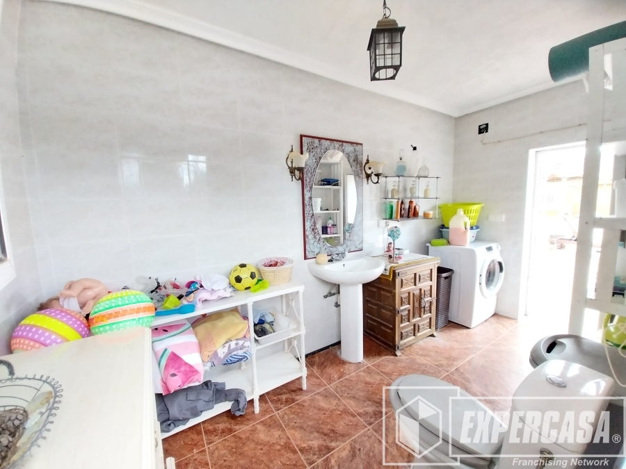 la estancia tiene una escalera exterior que nos conduce a una terraza solárium y una habitación abuhardillada, bajando tenemos la piscina el aseo un gran porche para poder reunirse con amigos y familiares, porche para 3 vehículos y paellero con cocina y comedor.