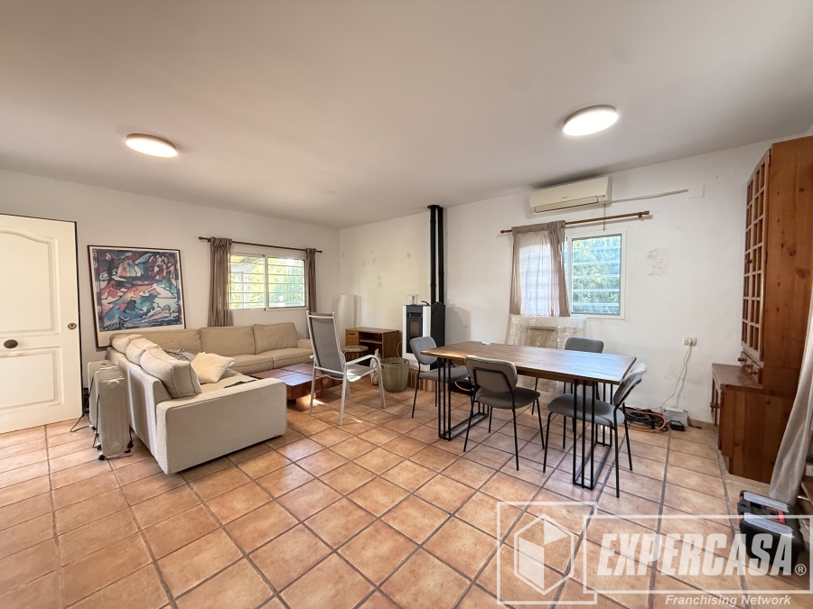 La PLANTA BAJA se compone de: Al entrar en la vivienda nos encontramos con un amplio salón-comedor con split de aire acondicionado, y chimenea, cocina independiente y un aseo.