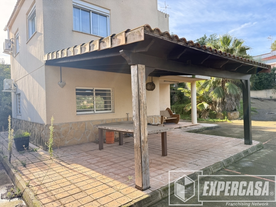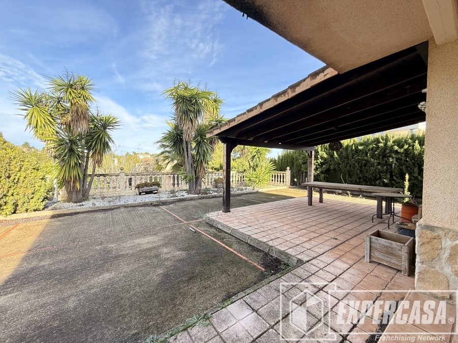 La vivienda tambien se compone por una amplia parcela 940 m2 que cuenta con: un espectacular jardín con gran variedad de plantas, paellero cubierto con salón-comedor con cristalera, varias terrazas y PISCINA.