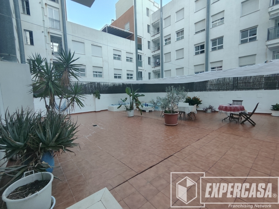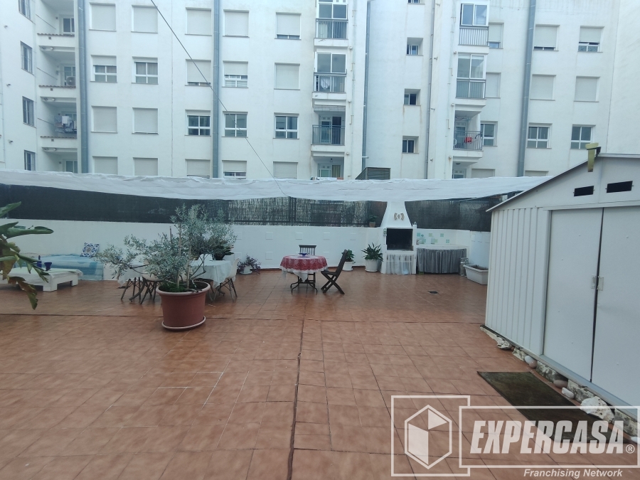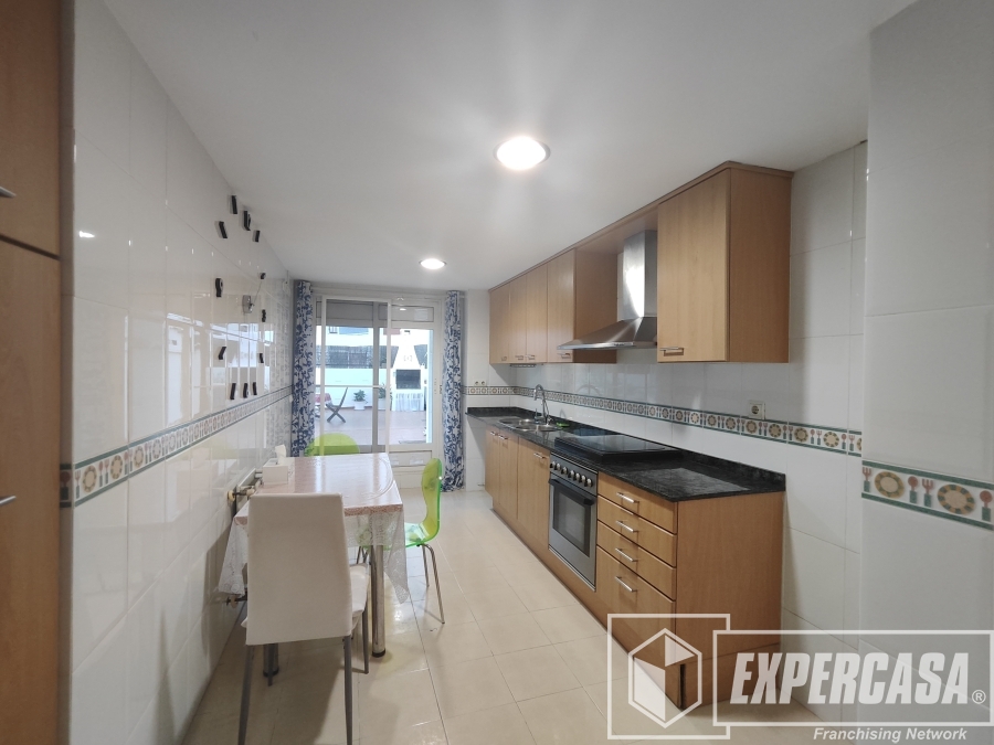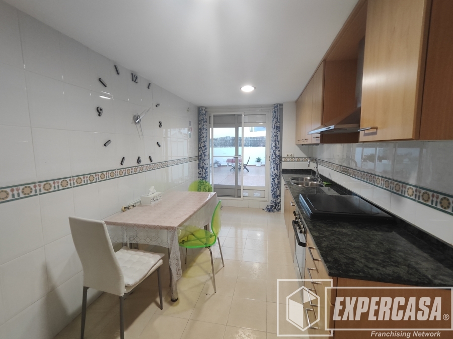 Vivienda LUMINOSA Y EXTERIOR que consta de 100 metros útiles más GRAN TERRAZA DE 125 M2 repartidos en: Al entrar en la vivienda nos encontramos con un amplio recibidor que distribuye a un salón-comedor muy luminoso con salida a balcón. Cocina independiente con galería y con salida a la terraza, tres habitaciones; todas ellas dobles y con armarios empotrados. Dos baños completos; ambos con bañera. Toda la vivienda esta equipada con radiadores de gas ciudad.
