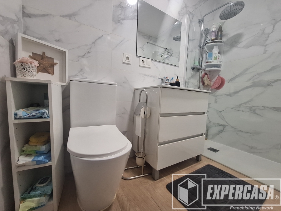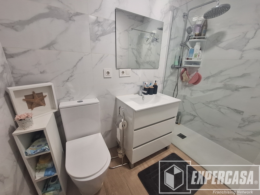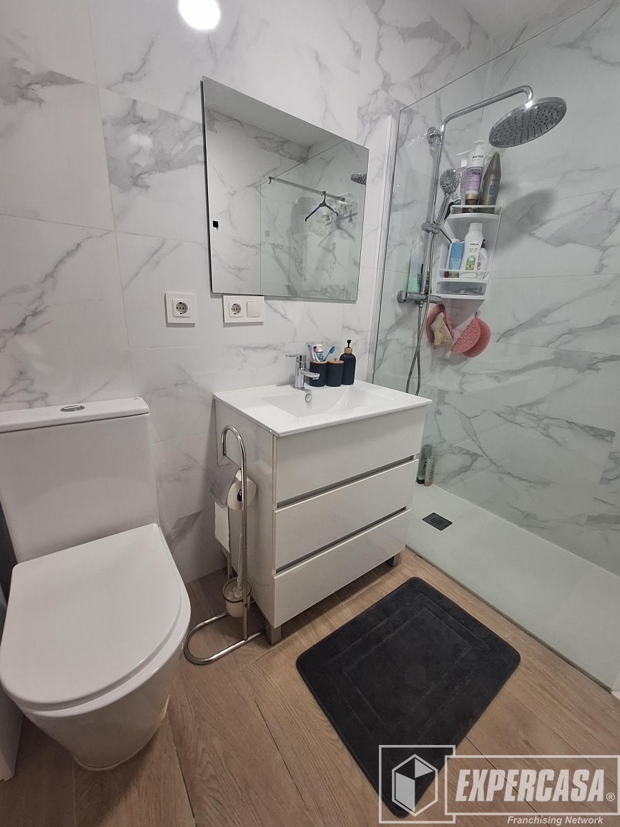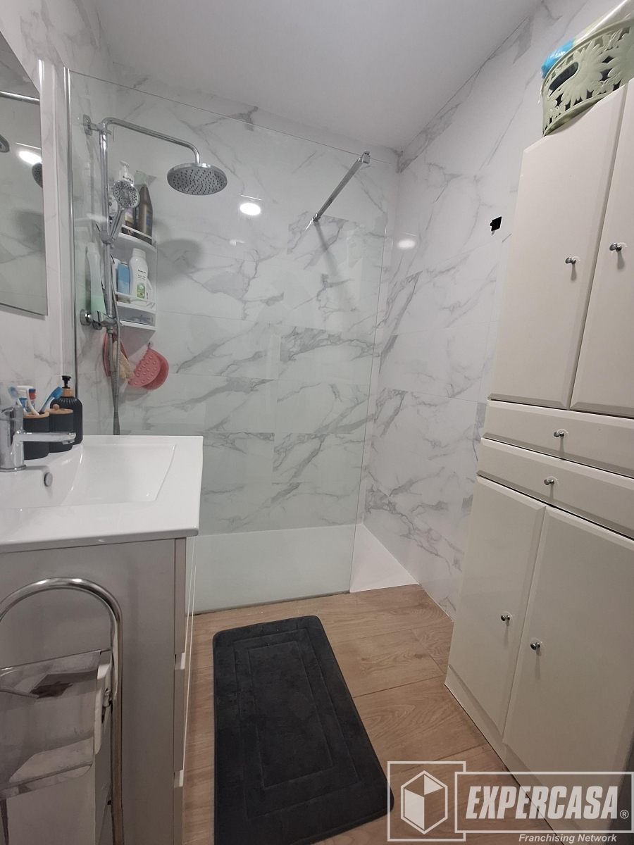 +El inmueble tiene una superficie total de 112 m2, distribuidos en 2 habitaciones (anteriormente 3), una simple y una doble, 1 cuarto de baño completo con plato de ducha.