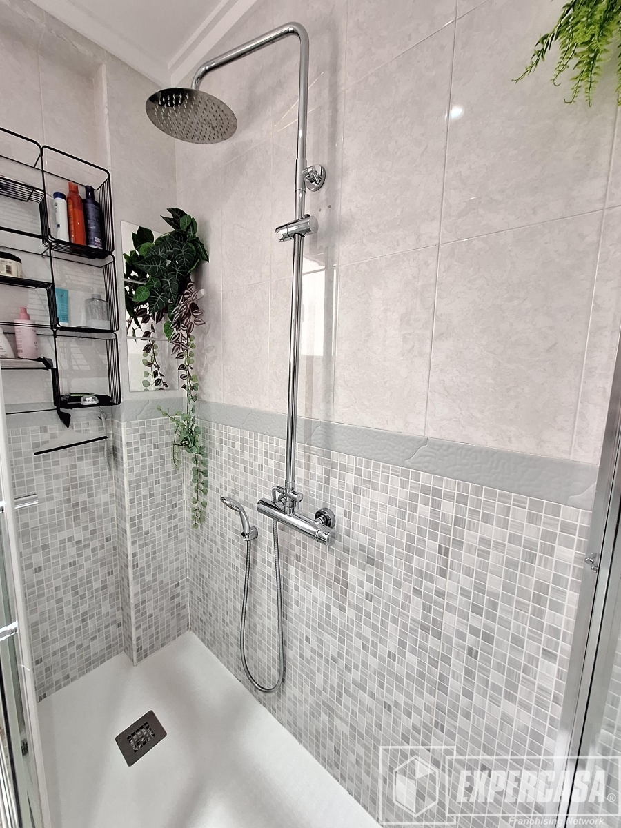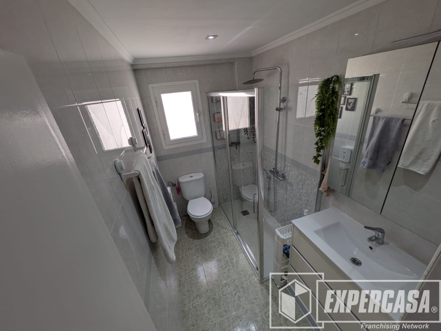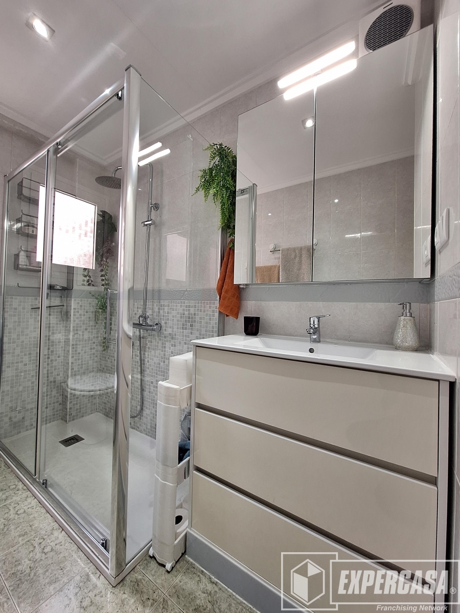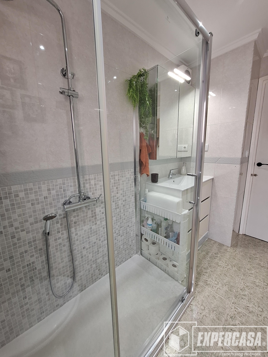+ Un cuarto de baño completo reformado, con plato de ducha y mampara.