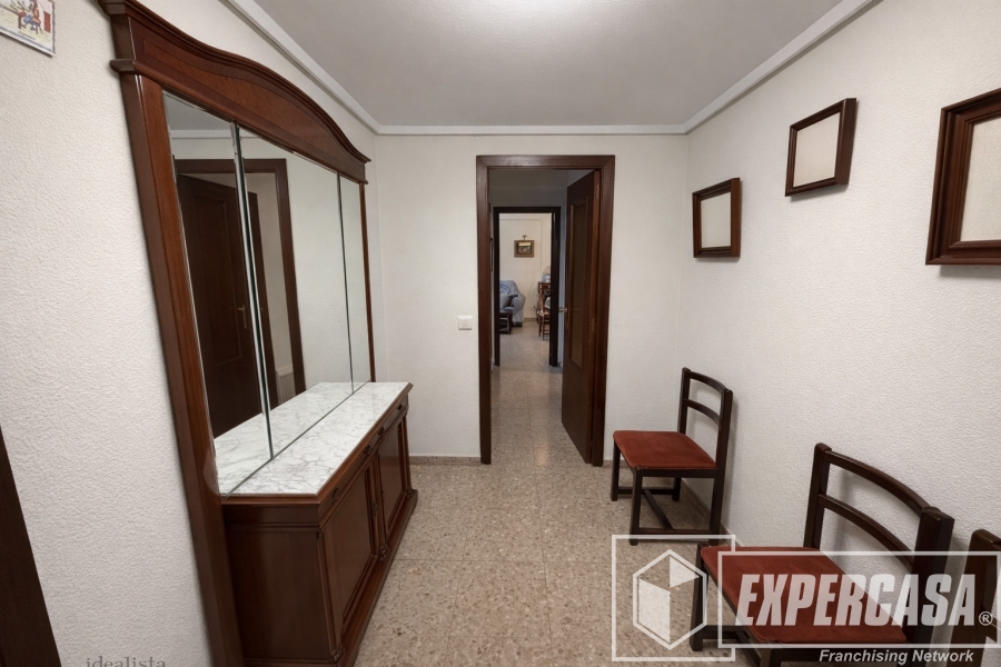 Con 134 m² construidos, este piso destaca por su amplitud y versatilidad. Dispone de cinco habitaciones, perfectas para familias numerosas, despacho profesional, zona de estudio o sala polivalente. Sus dos baños completos aportan comodidad en el día a día.