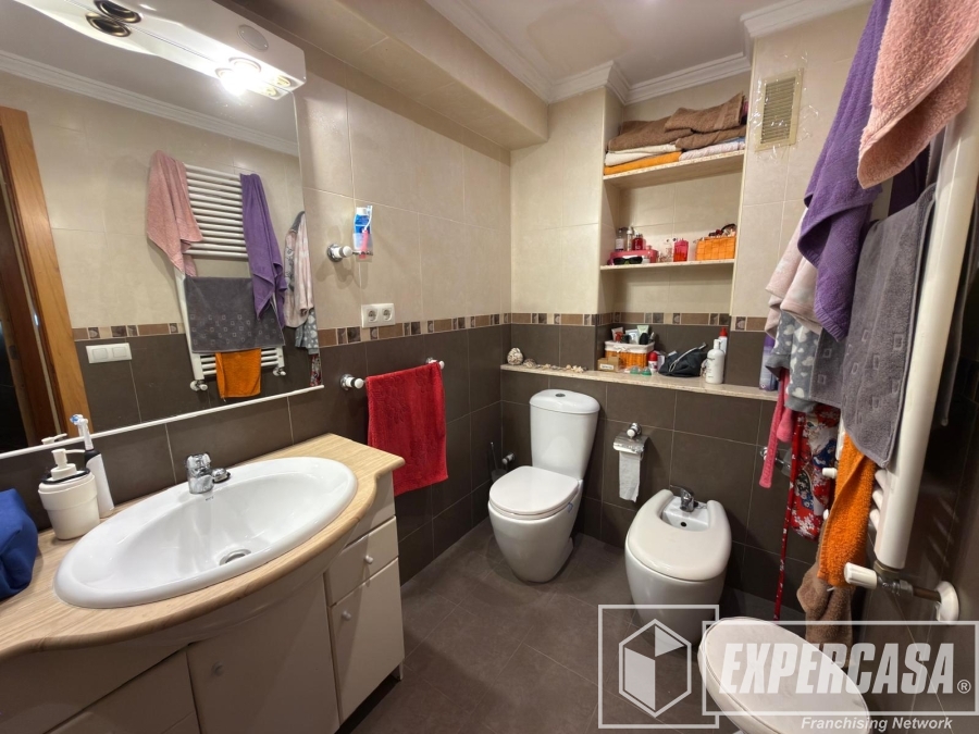 La cocina está totalmente reformada, equipada con lavavajillas Balay, placa de inducción, horno y microondas Teka, y con acceso a la terraza-galería comunitaria de uso privativo. El baño completo con plato de ducha dispone de calentador de toallas eléctrico.