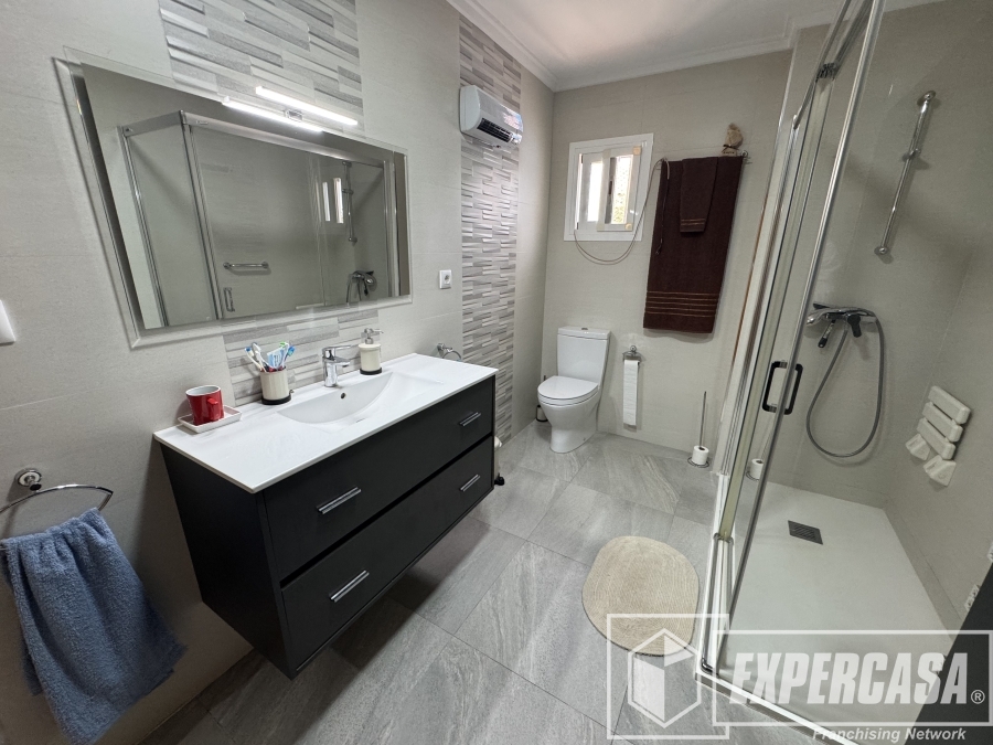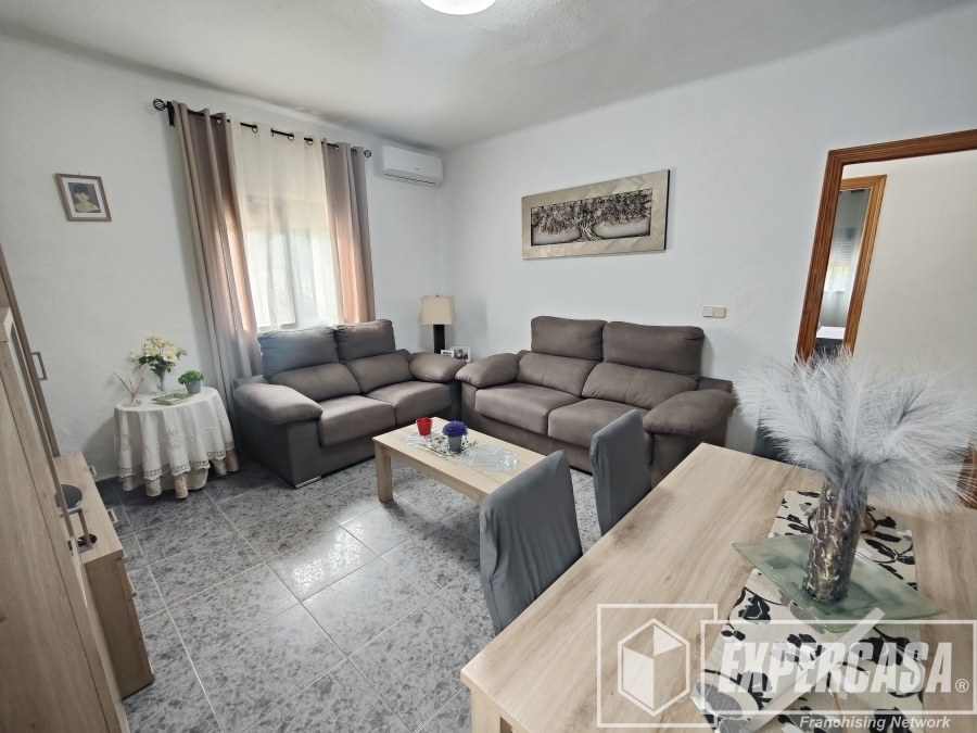La vivienda, recientemente reformada, dispone de 3 dormitorios y 1 baño completo, además de un luminoso salón-comedor con aire acondicionado que garantiza confort en todas las épocas del año. La cocina, práctica y funcional, se conecta fácilmente con las distintas estancias de la casa.
