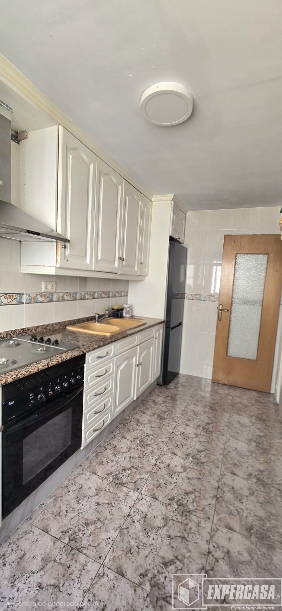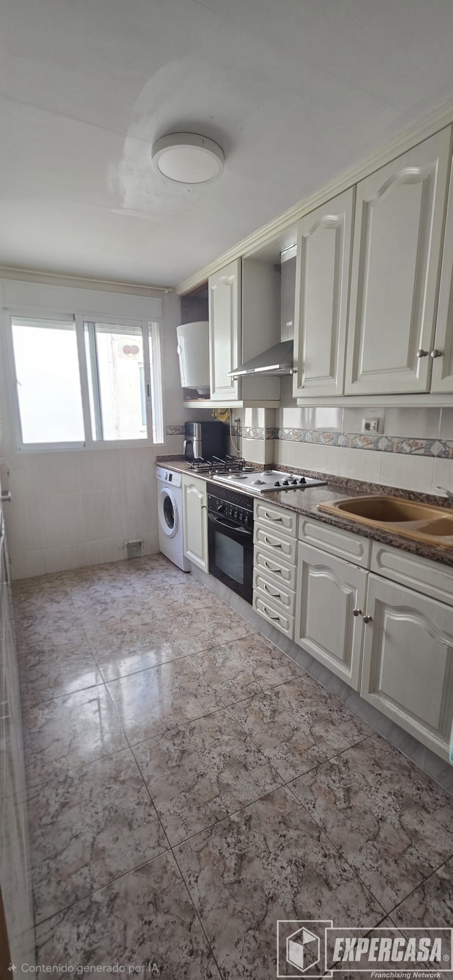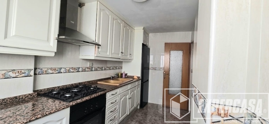 * Cocina independiente: La cocina tiene un estilo clásico con armariada blanca y encimera de granito, con cocina de gas, totalmente equipada.