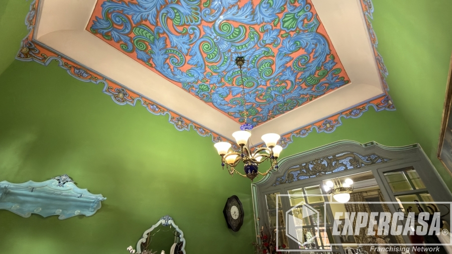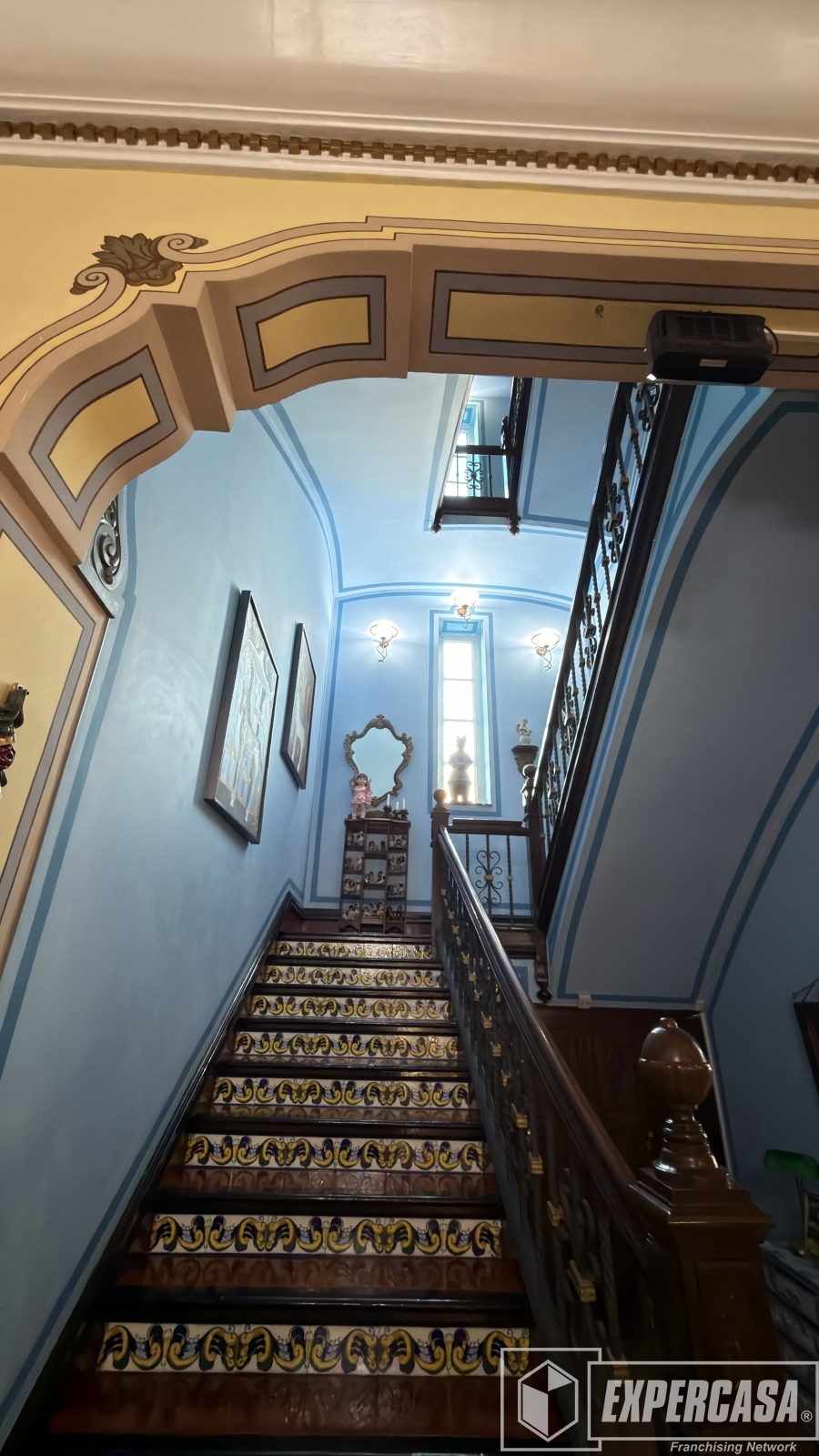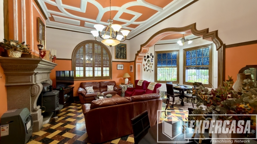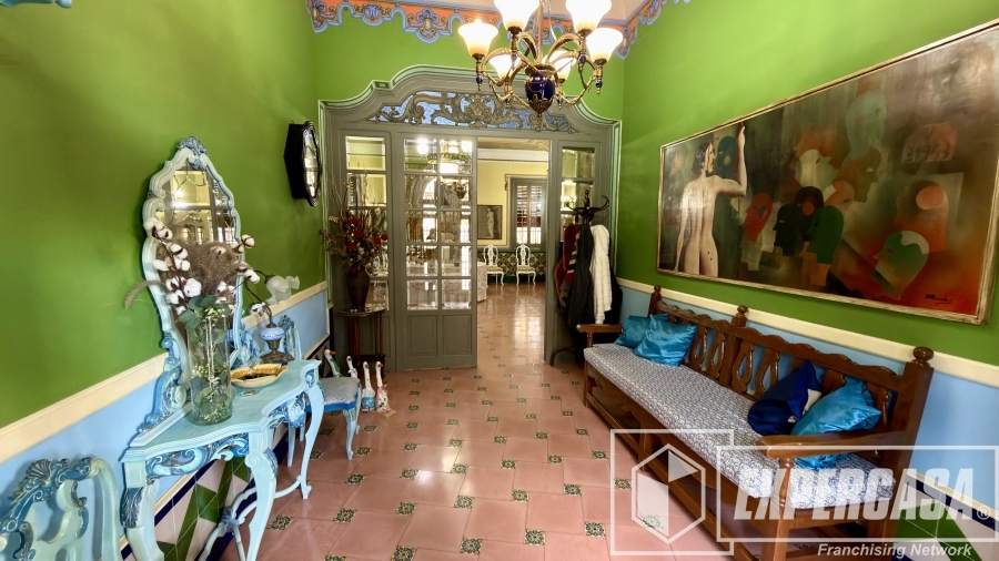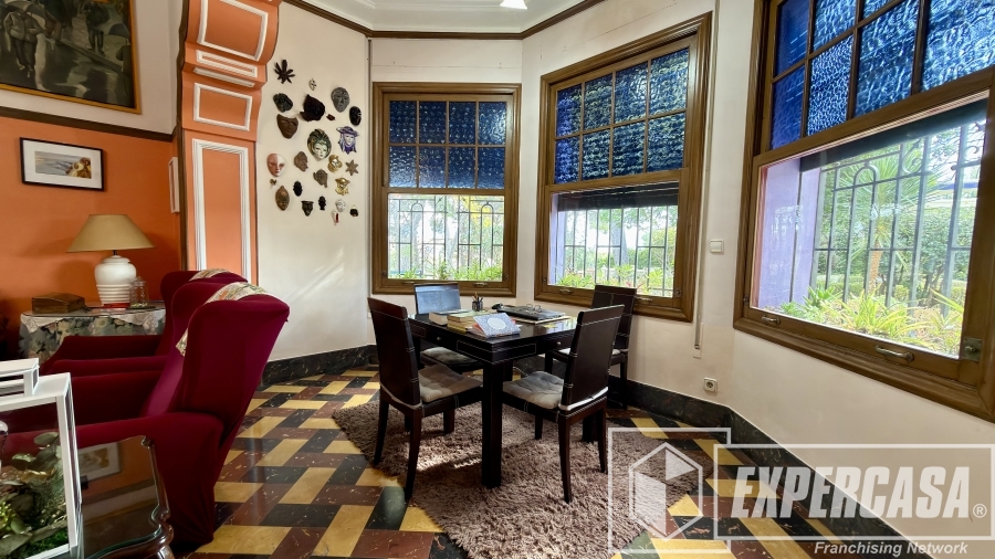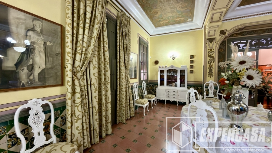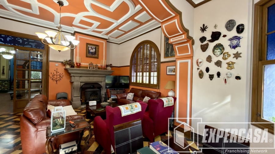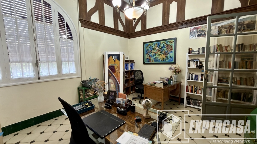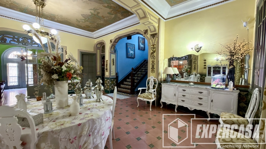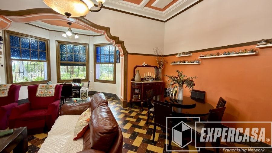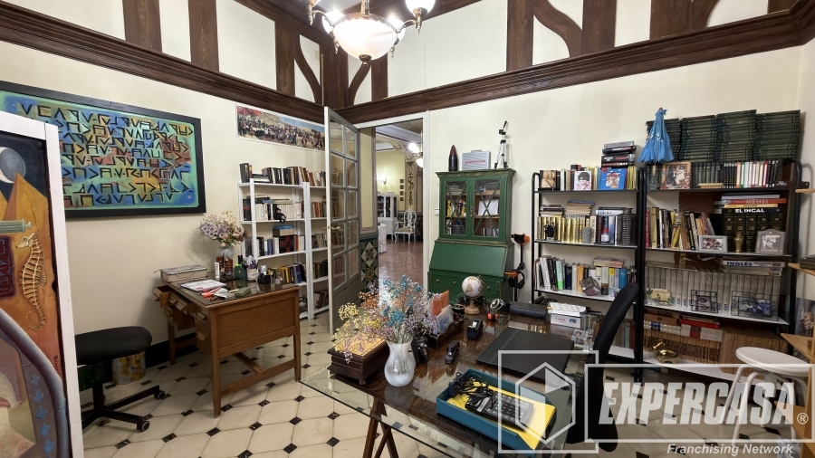• Gran salón principal con ventanales originales y techos altos con molduras.