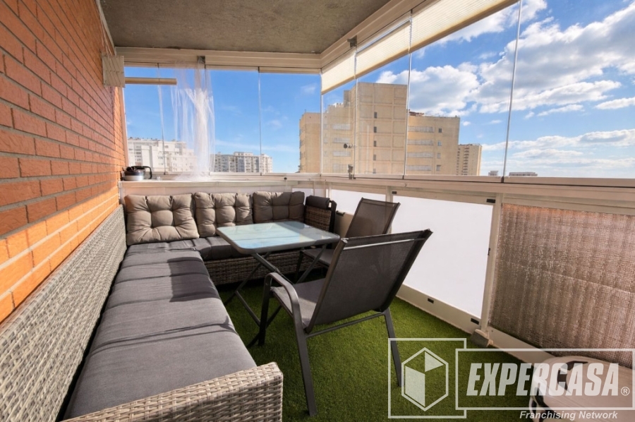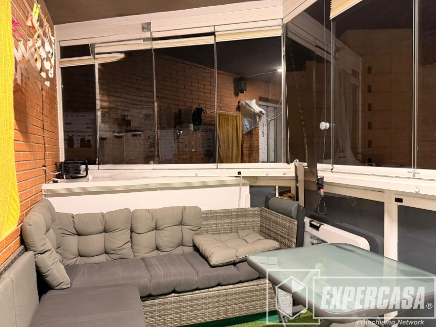 El salón comedor es luminoso y agradable, con acceso a una amplia terraza cerrada donde entra el sol, perfecta para disfrutar durante todo el año como zona de relax, comedor adicional o espacio polivalente.