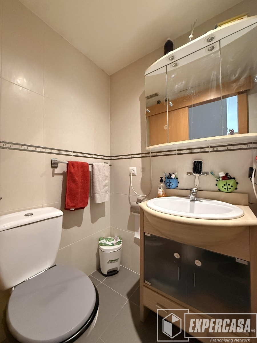 Vivienda LUMINOSA que consta de 66 metros útiles repartidos en: Al entrar en la vivienda nos encontramos con un recibidor que distribuye a salón-comedor luminoso con vistas despejadas y salida al balcón, cocina office, aseo, dos habitaciones dobles; siendo una de ellas la habitación principal con baño en suite completo con plato de ducha. Las dos habitaciones disponen de aire acondicionado y armarios empotrados. Ademas la vivienda tambien cuenta con TRASTERO en el mismo bloque del edificio Y PLAZA DE GARAJE ubicada en Calle Ceramiques.