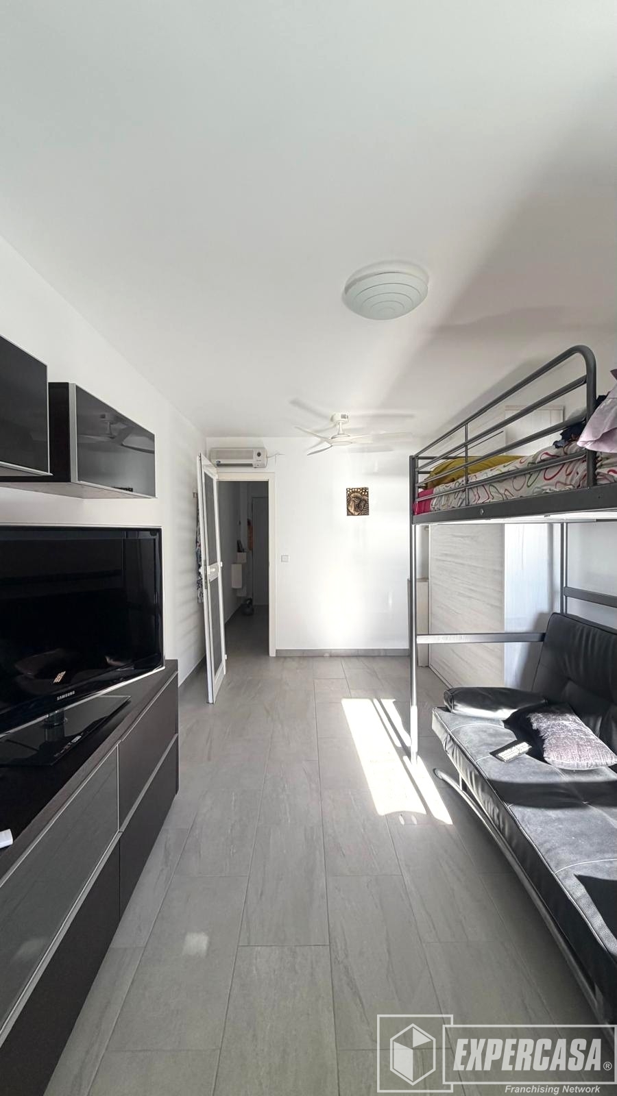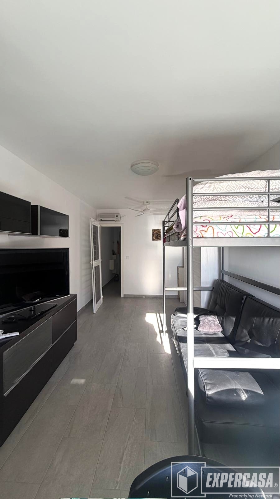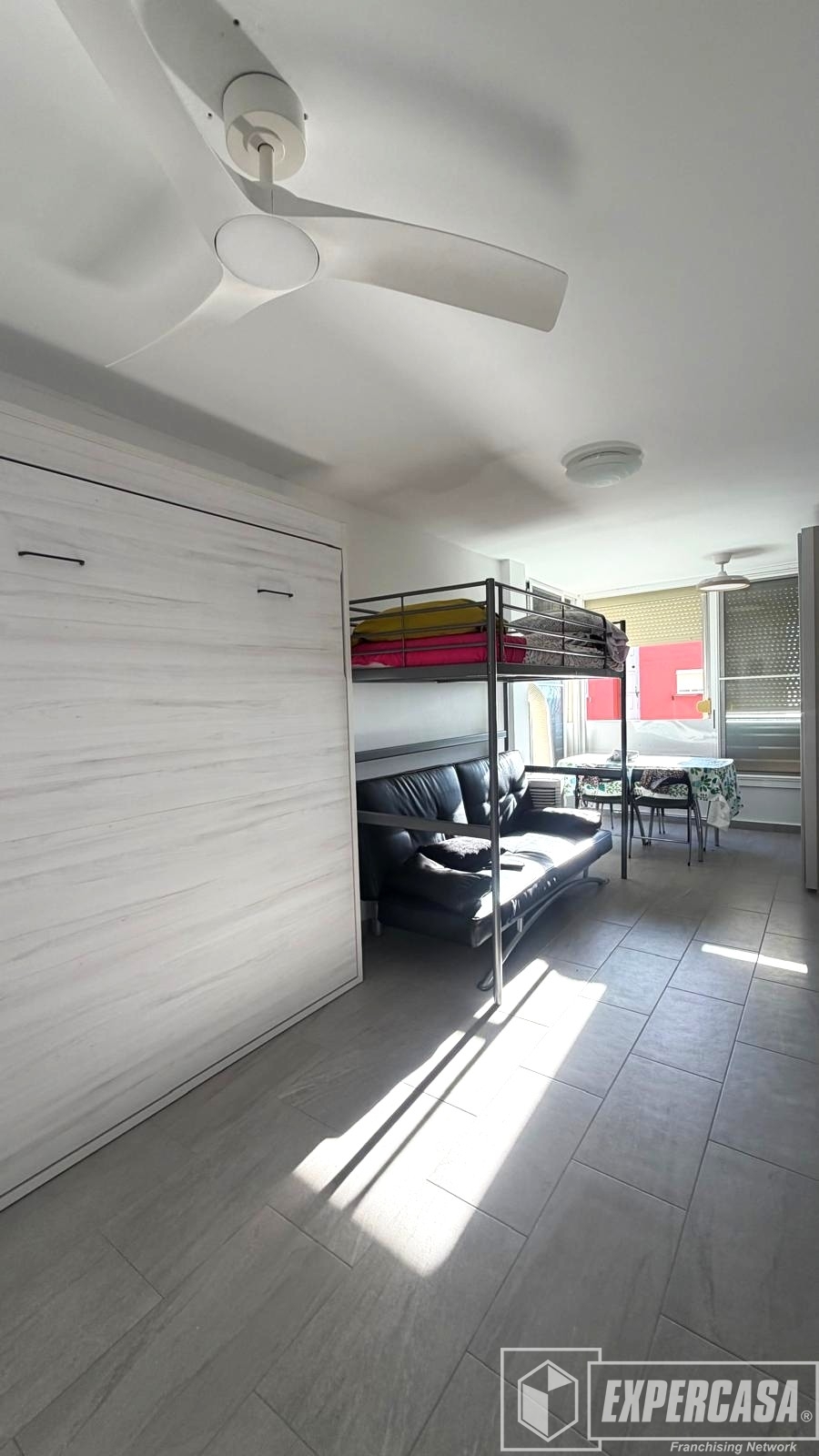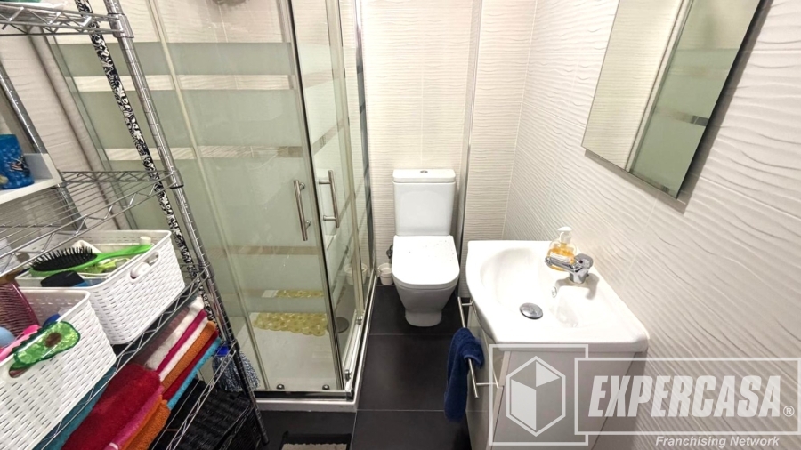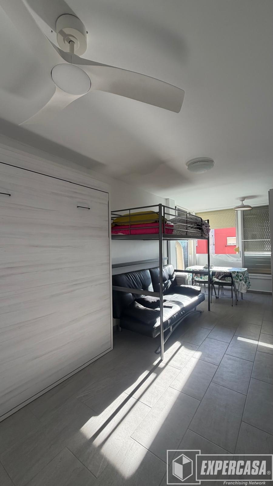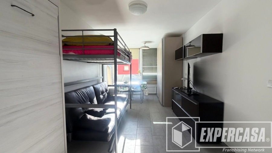 Desde su entrada encontramos en primer lugar a mano izquierda su cocina práctica y funcional. Seguidamente baño completo con plato de ducha y por último la zona de salón toda diáfana.