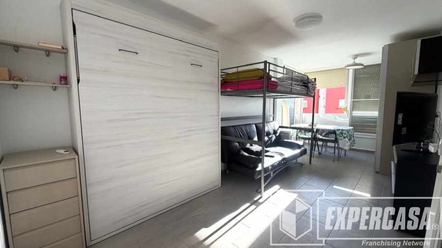 La vivienda se encuentra en una decimotercera altura con ascensor con vistas al mar. Se trata de un apartamento tipo estudio TODO REFORMADO de 40m2 con cocinita equipada, baño completo independiente y zona salón-comedor. Dispone en esta última de cama abatible en pared, lo que permite optimizar el espacio durante el día. Cuenta con vistas despejadas que aportan abundante luminosidad a la vivienda.