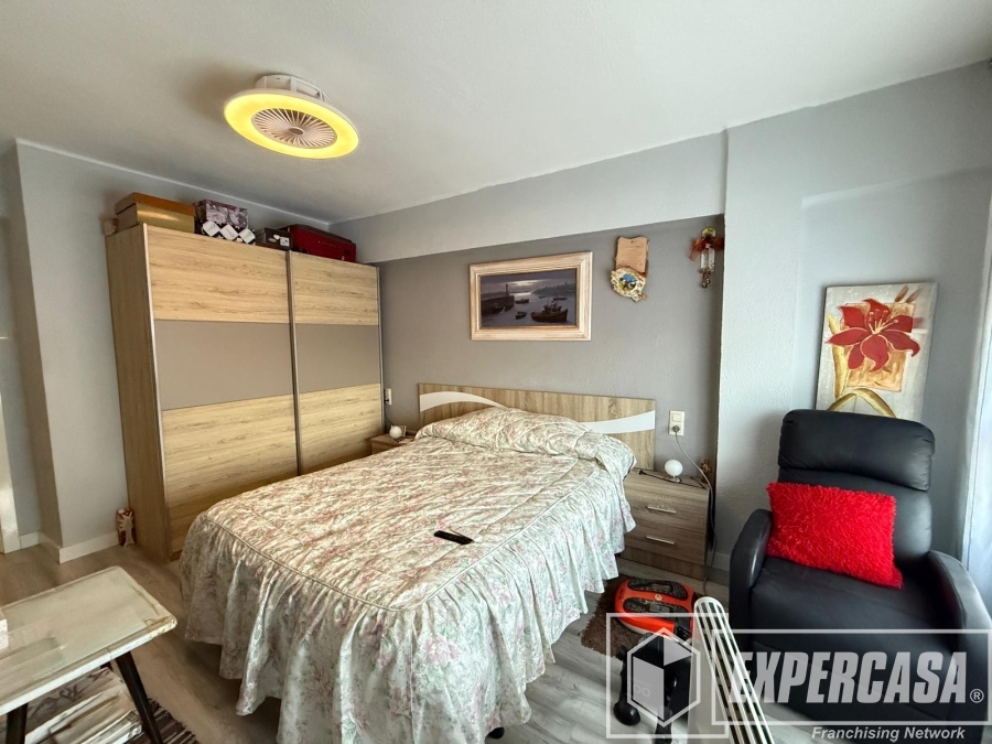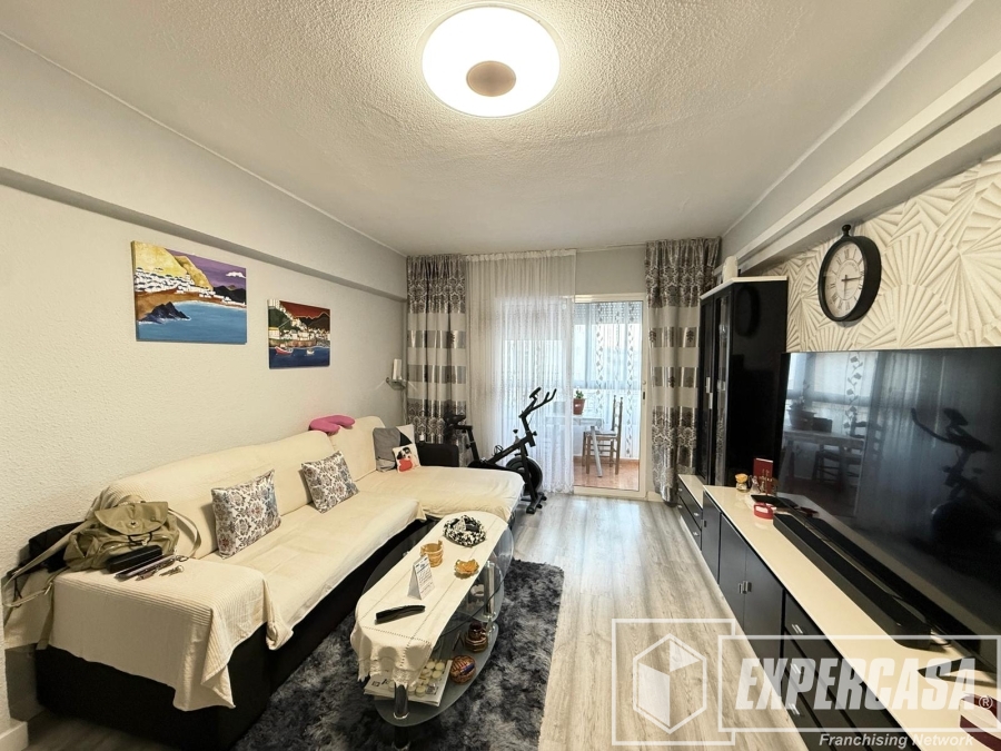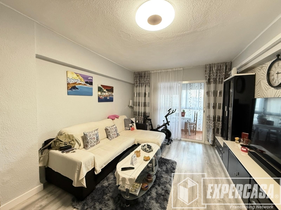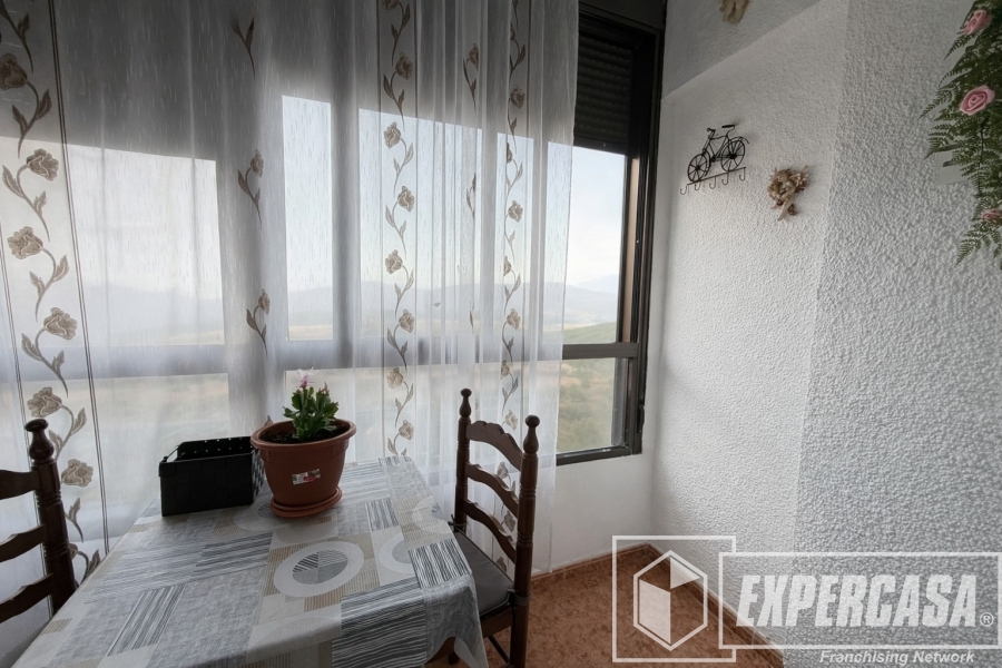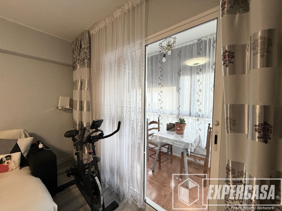 El salón-comedor es amplio y muy luminoso, con espacio para zona de descanso y comedor. Destaca por su buena entrada de luz natural y por contar con aire acondicionado, lo que garantiza confort durante todo el año. Desde el salón se accede a un agradable balcón exterior, donde cabe perfectamente un pequeño conjunto de mesa y sillas, ideal para disfrutar de las vistas abiertas a la ciudad.