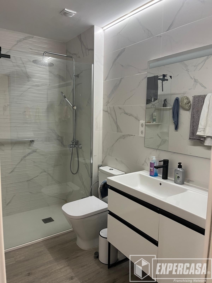 El piso se encuentra totalmente reformado, ofreciendo un diseño moderno y funcional. Dispone de tres habitaciones y dos baños completos, ideal tanto para familias como para compartir.