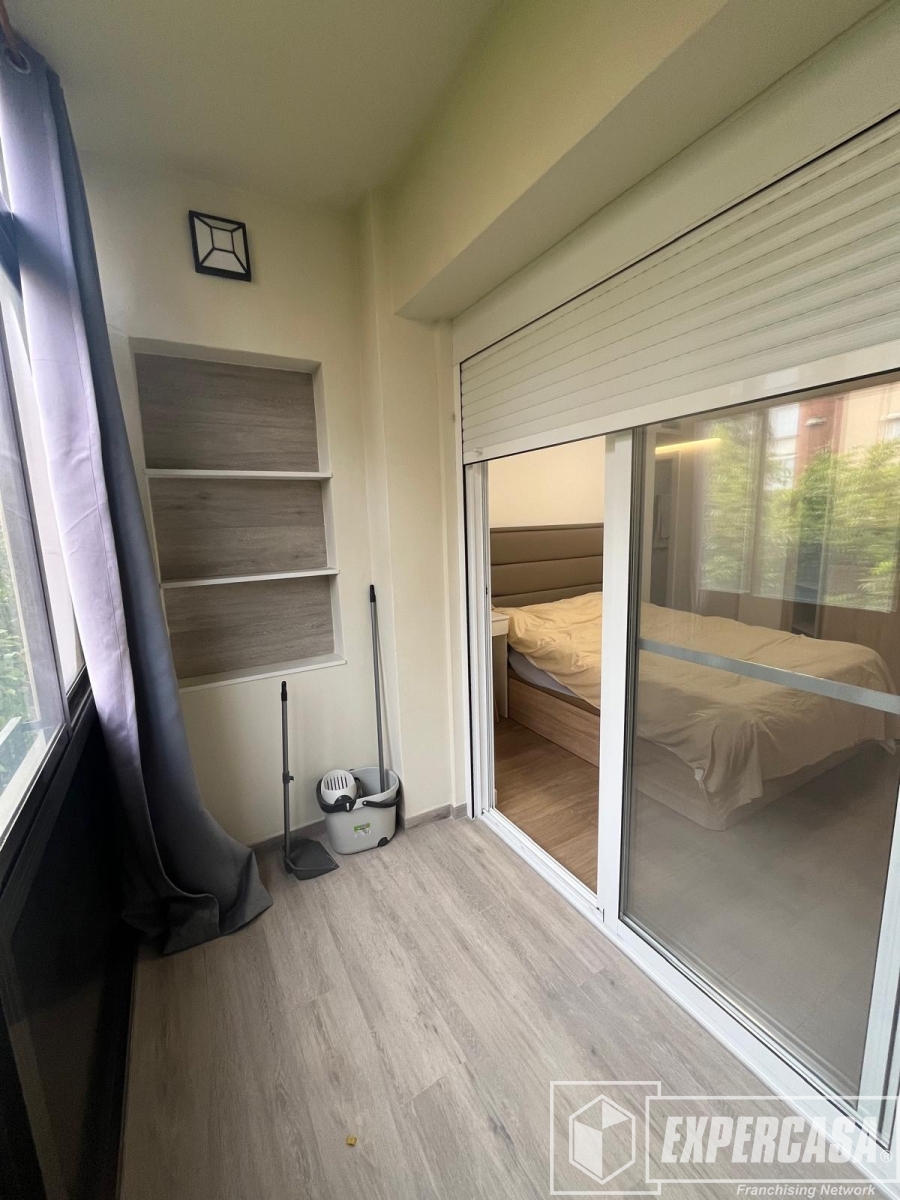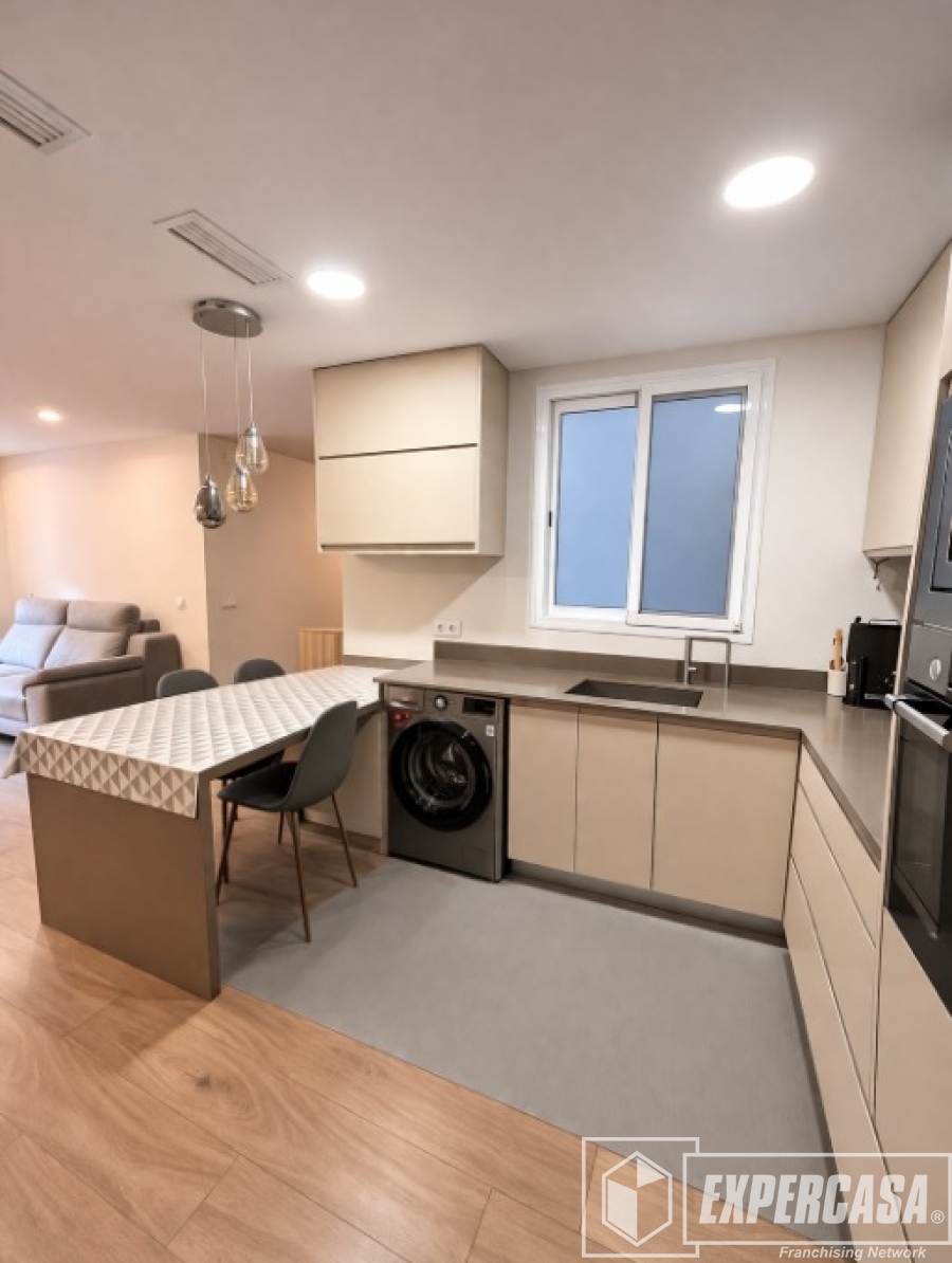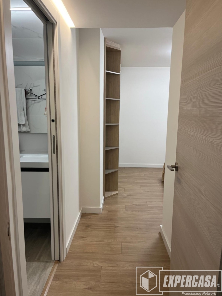 Cuenta con cocina abierta al salón, totalmente equipada, creando un espacio amplio y luminoso. Además, el piso dispone de balcón exterior cerrado con ventanales, perfecto como zona adicional de estar o despacho.